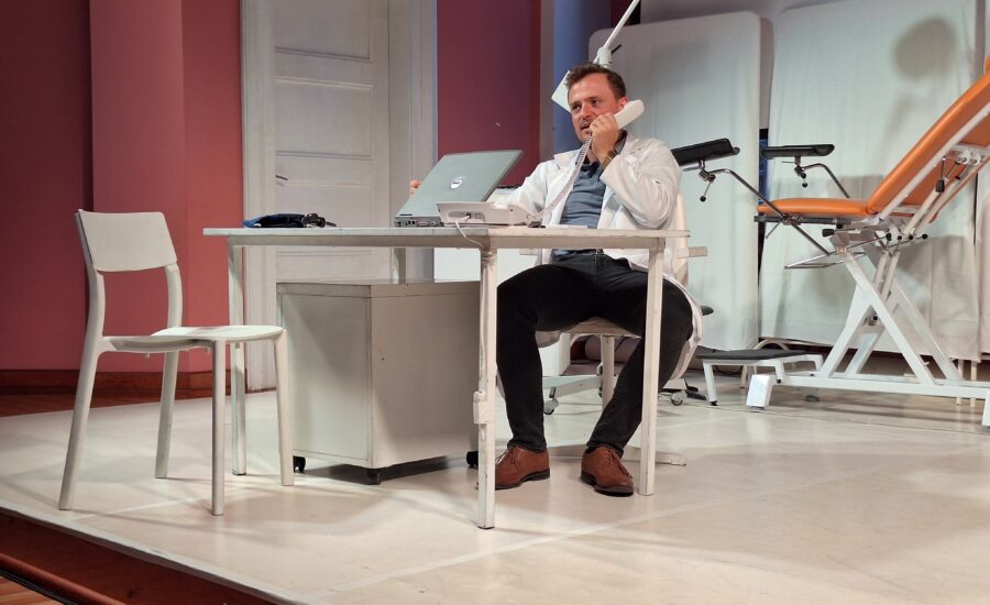 W ramach obchodów 25-lecia istnienia Odziały Terapii Uzależnień w naszym szpitalu, odbył się wyjątkowy spektakl: „Lekarz na telefon” autorstwa Borbála Szabó, przygotowany specjalnie dla pacjentów naszej placówki. Ta jednoosobowa farsa, w której główną