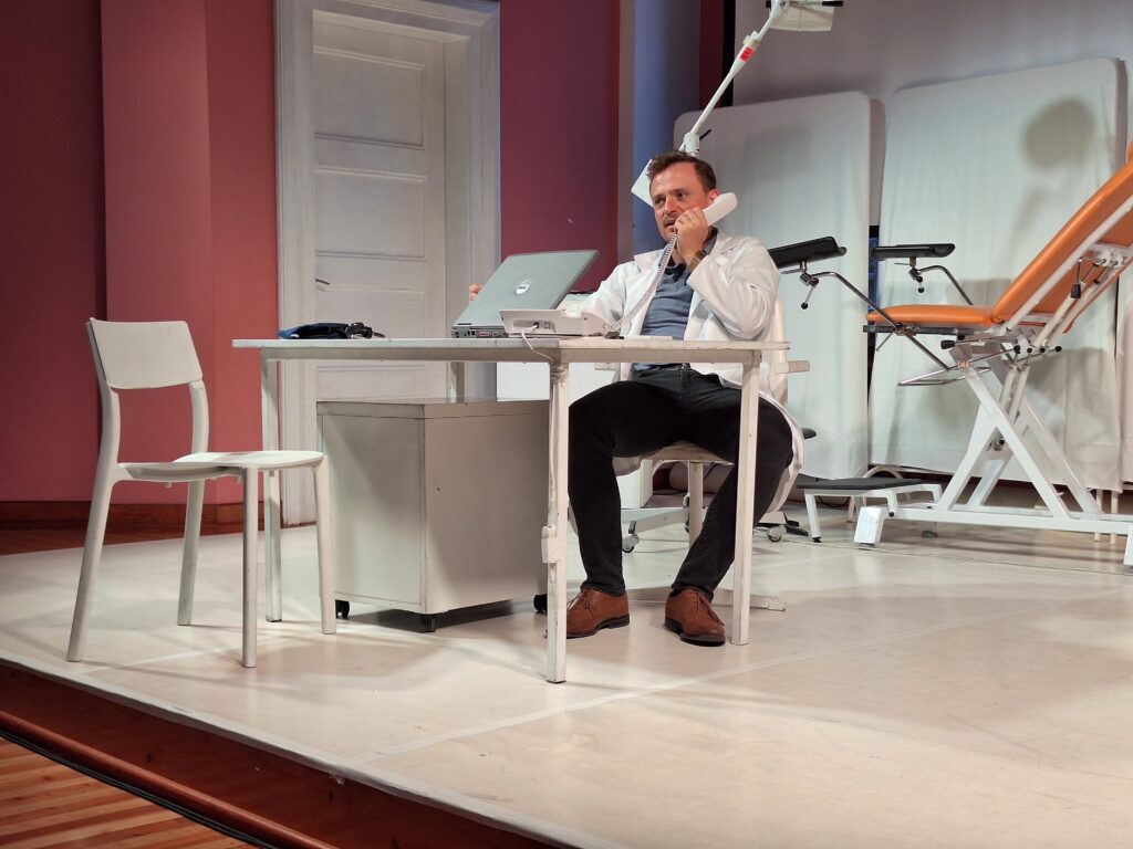 W ramach obchodów 25-lecia istnienia Odziały Terapii Uzależnień w naszym szpitalu, odbył się wyjątkowy spektakl: „Lekarz na telefon” autorstwa Borbála Szabó, przygotowany specjalnie dla pacjentów naszej placówki. Ta jednoosobowa farsa, w której główną rolę zagrał Dawid Dziarkowski, była znakomita odskocznią i dała widzom mnóstwo śmiechu i rozrywki.